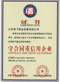 山东首飞泵业设备有限公司获得守合同重信用荣誉称号